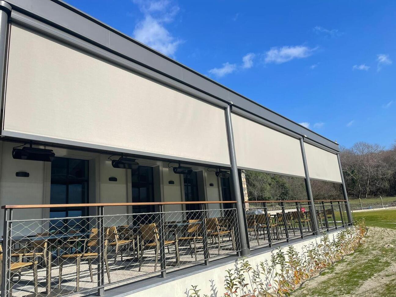 Ürün tek parçada 24 m2 ye kadar çalışabilir, kesinlikle sistemde bir deforme olmaz. Alt etek çıtası, ağırlığı sayesinde kumaşın gergin durmasında önemli rol oynamaktadır. Kumaş sarım borusunun içerisine gizlenen tüp motor, uzaktan kumanda ve sabit butonlu sistemiyle ürünün tek bir tuşla hareket etmesini sağlar.