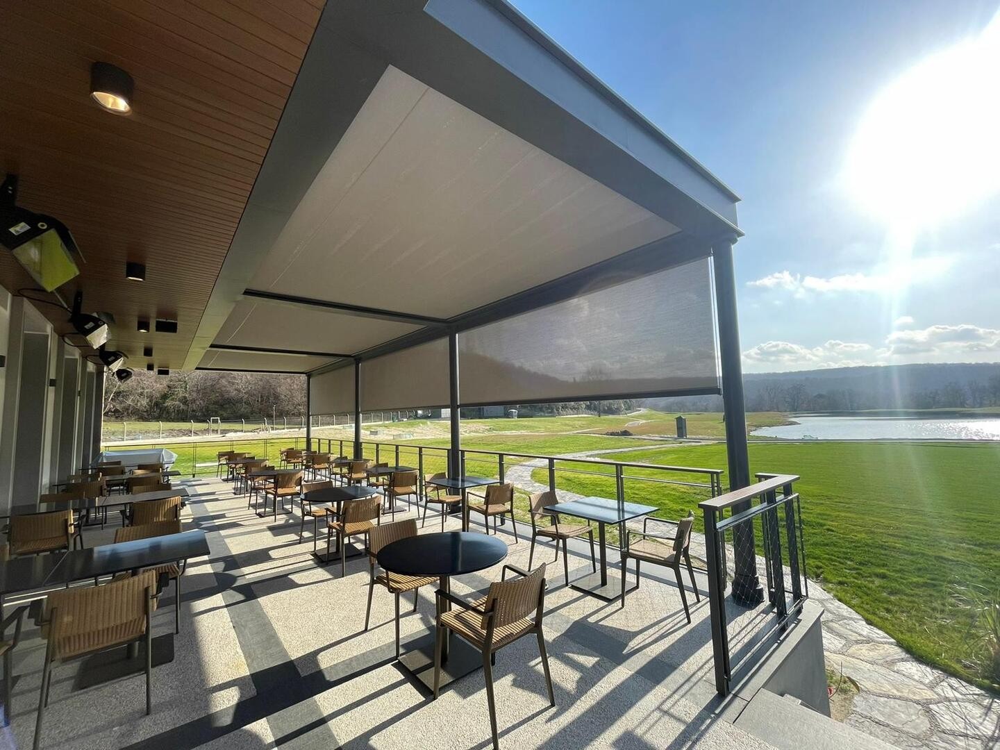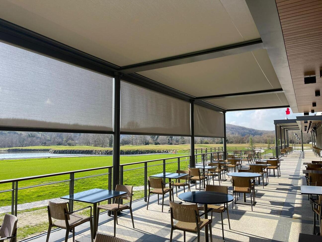 Skyscreen zip perde birçok ticari kurulumun yanı sıra üst düzey ev durumlarında da kullanılmaktadır.